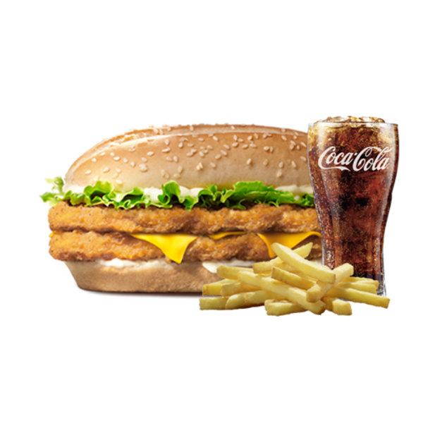 Vous avez la chance de doubler le plaisir du Chicken Royal, grâce à deux tranches de poulet pané, traitées dans un enrobage spécial à la fois croustillant et crémeux.