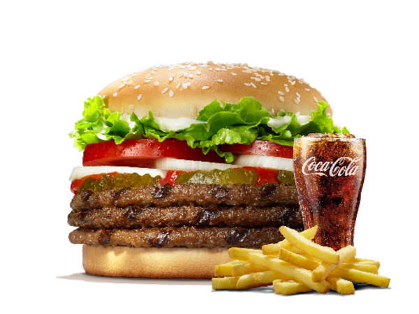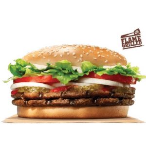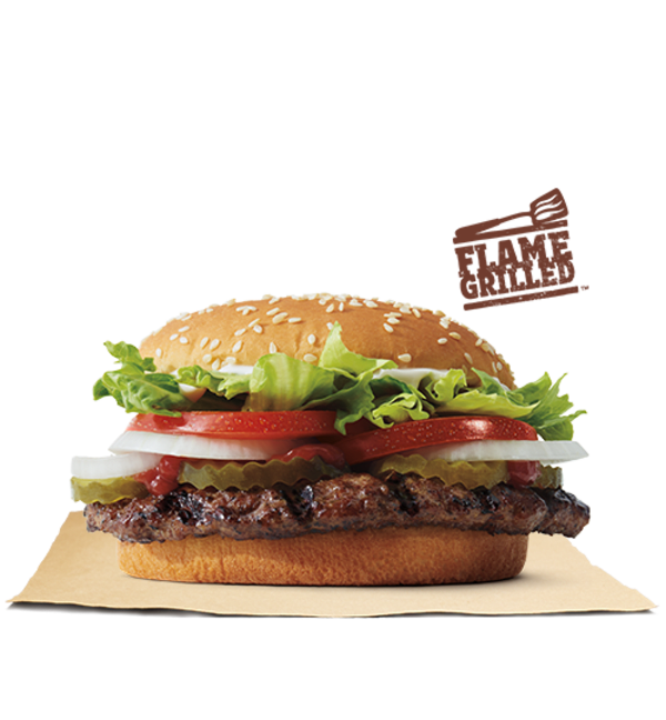 Fan du WHOPPER ? Vous allez adorer sa version grande taille ! Deux Savoureuses de viandes à la bœuf grillées et flammes Une tranche de fromage Délicieuse .