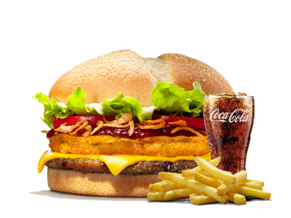 Extra-extra-large ! L'inimitable sauce BIG KING, deux viandes de boeuf grillées à la flamme et deux délicieuses tranches de fromage. Une icône de taille.