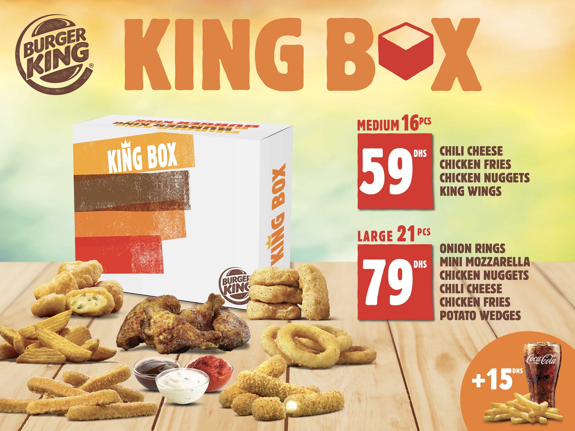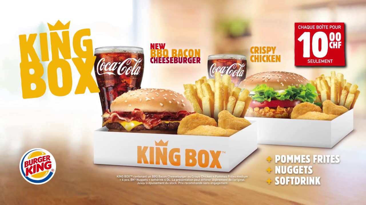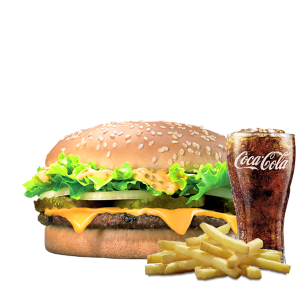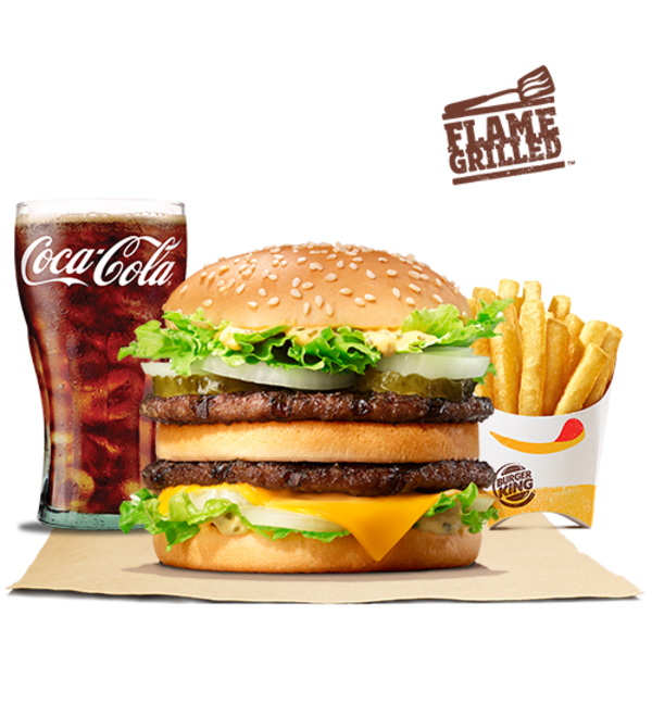 Extra-extra-large ! L'inimitable sauce BIG KING, deux viandes de bœufs grillés à la flamme et deux délicieuses tranches de fromage.Une icône de taille.