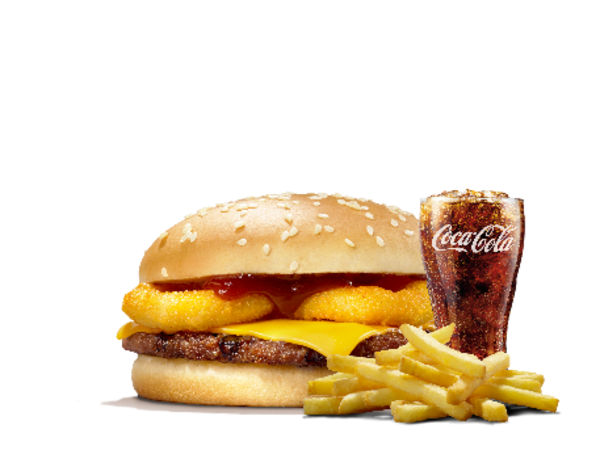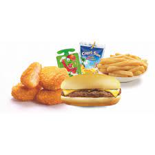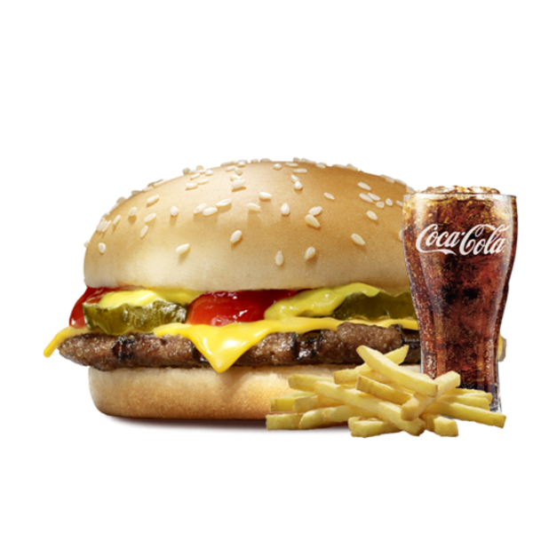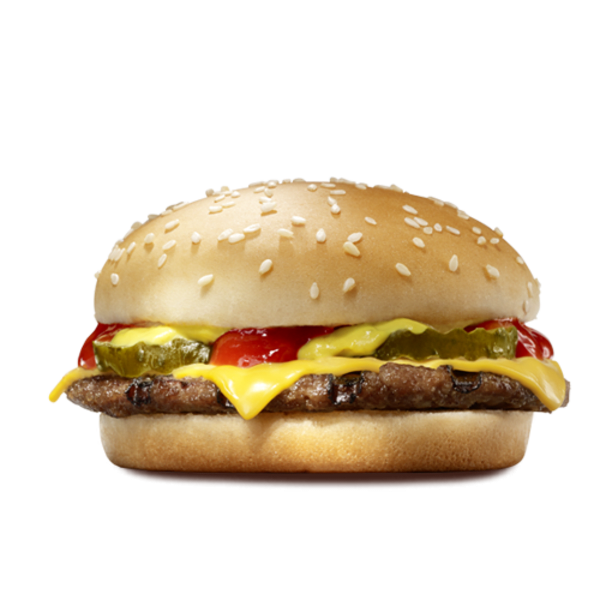 Faîtes goutez à vos enfants notre Cheeseburger composé d'une galette de bœuf grillée à la flamme, garnie d'une couche de fromage américain fondu, et de garnitures. Servi avec une petite boisson de votre choix et un jouet cadeau.