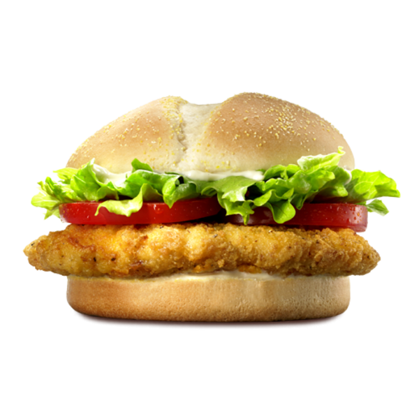 Un classique, avec une délicieuse tranche de poulet sur un petit pain au sésame grillé, garni de laitue fraîche et de sauce crémeuse.