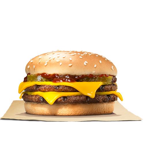 Avec deux steaks hachés 100% boeuf grillé à la flamme, du fromage fondue et garni de tous nos classiques… Un Quarter Pound King c'est bien, un DOUBLE Quarter Pound King c'est encore mieux !